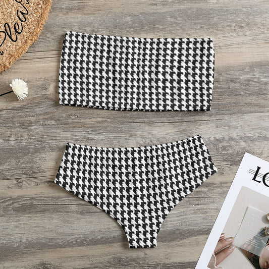Vampire Art Classic Retro Houndstooth in Black & White Women's Strapless Bikini Swimsuit