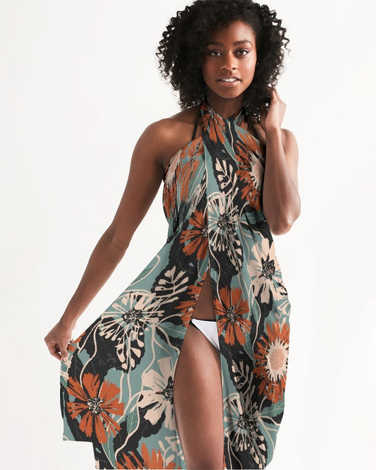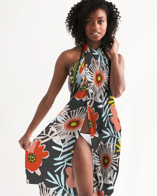 Vampire Art Beach Swim Cover-Up - Surfy Grungy Flowers against a Black Background