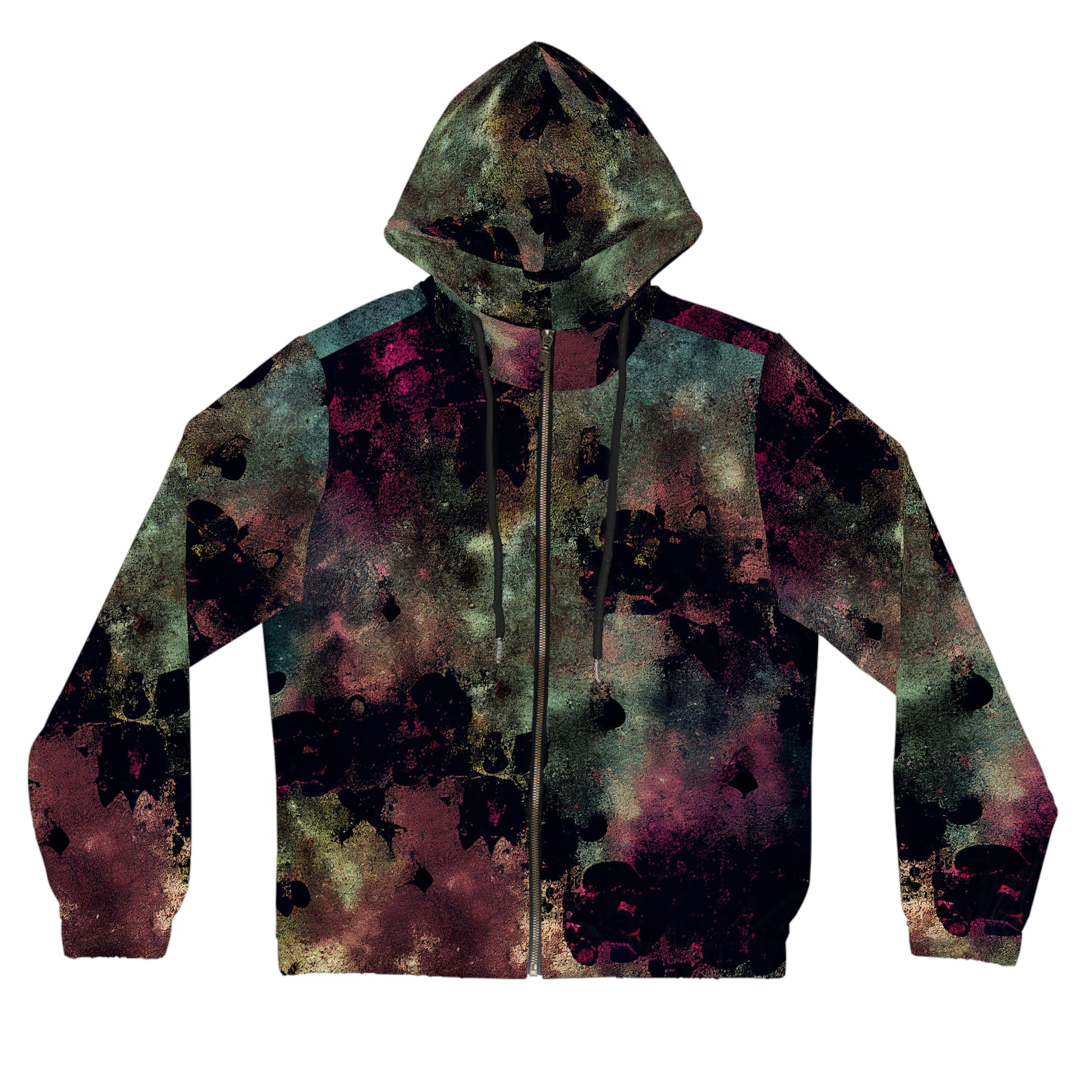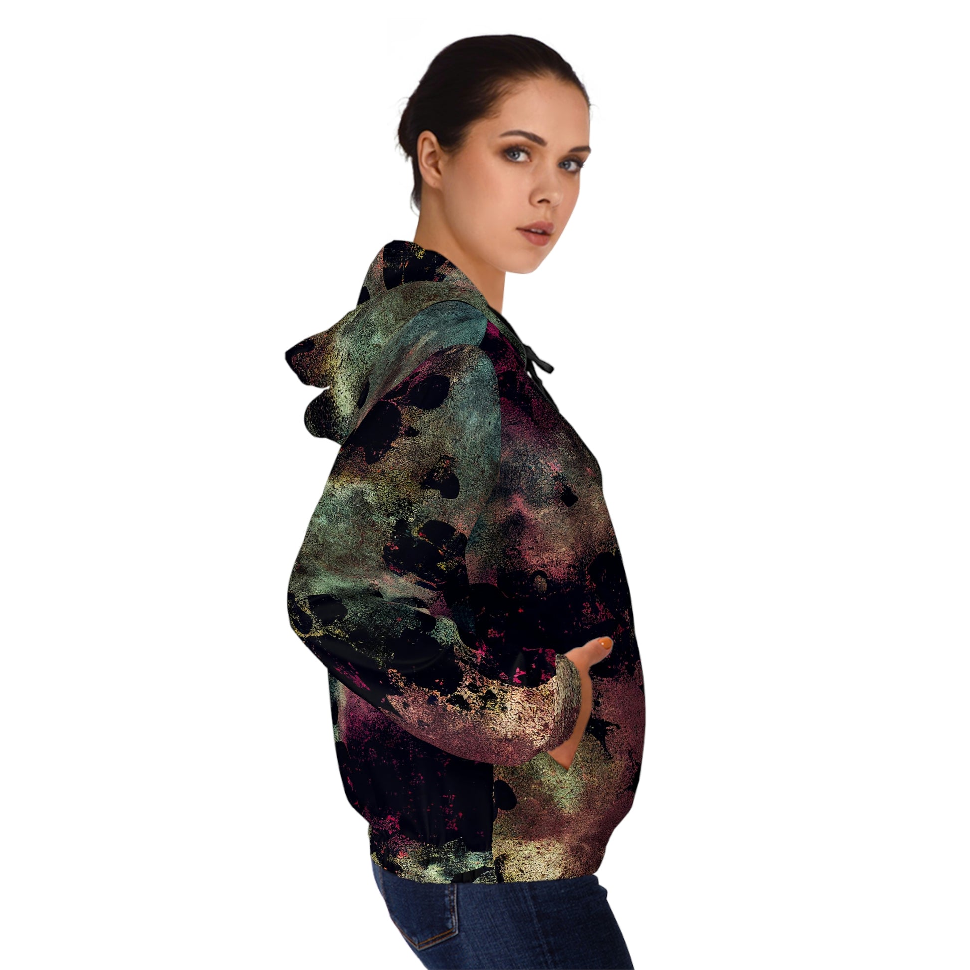 Stay warm, stay stylish - all with this women’s full zip hoodie featuring the fabulous Grunge pattern, a very deep and rich colour reminiscent of CD covers from the iconic nineties. Equipped with two-side pockets for daily convenience, a hood with a black drawstring, and a metal zipper, this hoodie bears all the marks of a cozy daily staple.