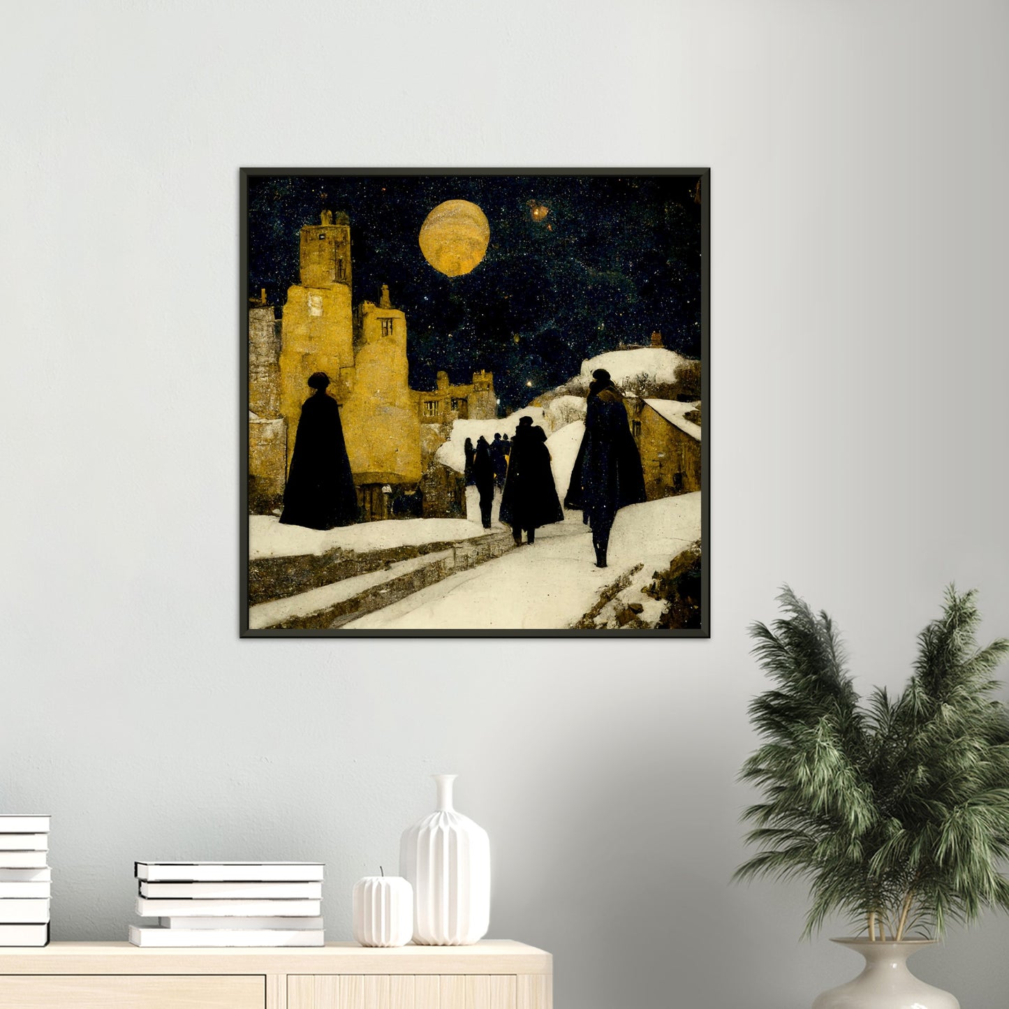 Vampire Art Vampires Through the Streets of Corfe Castle on A Winter Night Premium Matte Paper Metal Framed Poster