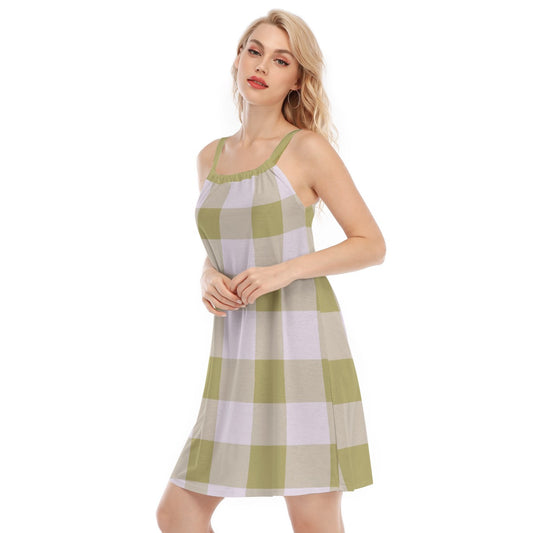 Vampire Art Cottagecore Women's Sleeveless Cami Dress - Olive Green Gingham