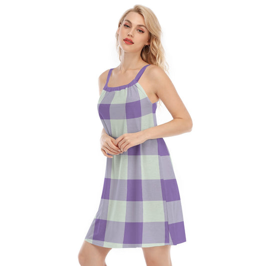 Vampire Art Cottagecore Women's Sleeveless Cami Dress - Purple Gingham