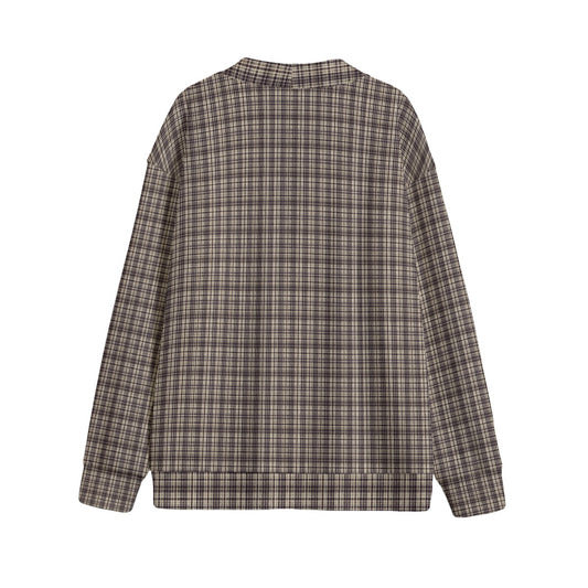 Vampire Art Dark Academia Black & Cream Tartan Unisex V-neck Knitted Fleece Cardigan With Buttons