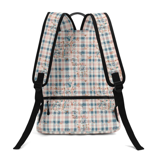 Vampire Art Retro Chic Vegan Leather 17 inch Back to School Twill Backpack - Cottagecore Pale Blue Floral Gingham