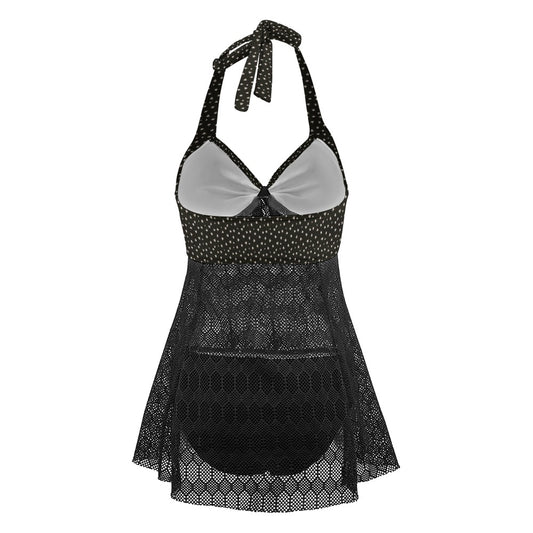 Vampire Art Goth Halter Two Piece Mesh Tankini Swimsuit - Mini Roses