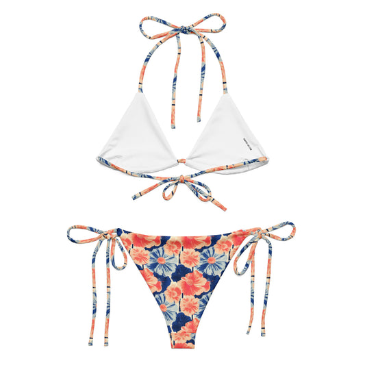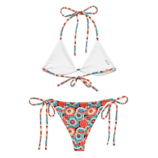 Vampire Art Vintage Blossom 70s Recycled String Bikini - Blue and Pink