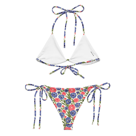 Vampire Art Vintage Blossom 70s Recycled String Bikini - Little Pink and Blue Flowers