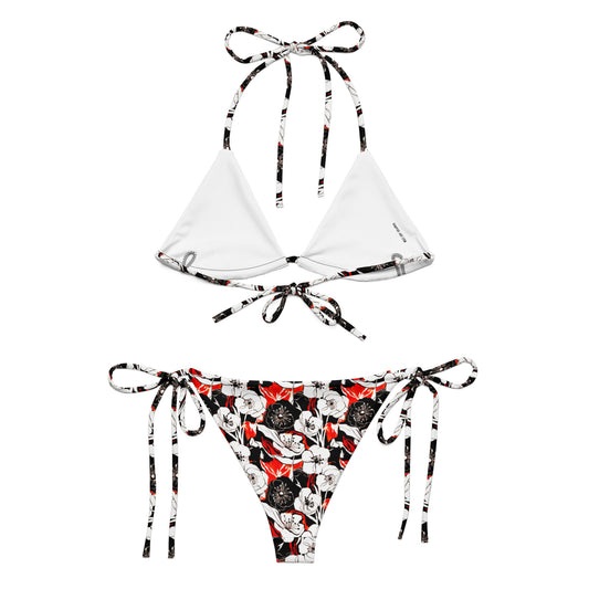 Vampire Art Vintage Blossom 70s Recycled String Bikini - Black, Red and White