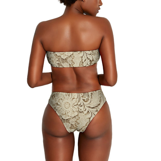 Vampire Art Two Piece Bandeau Strapless Retro Bikinis Swimsuit - Dark Academia Cream Lace Print