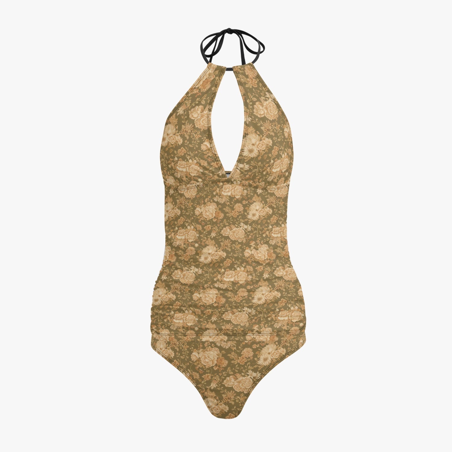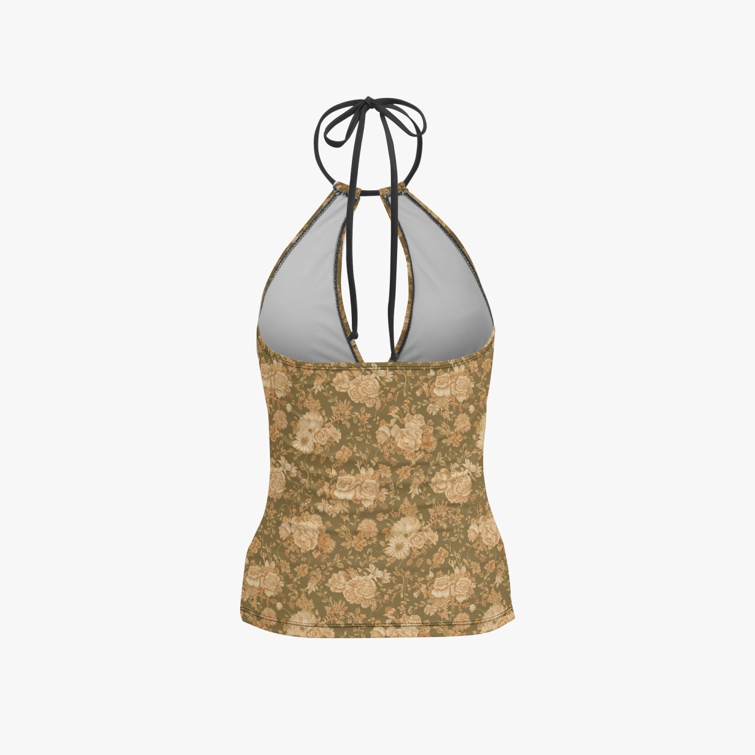 Vampire Art Retro Halter Two-Piece Tankini Swimsuit - Vintage Florals in Brown
