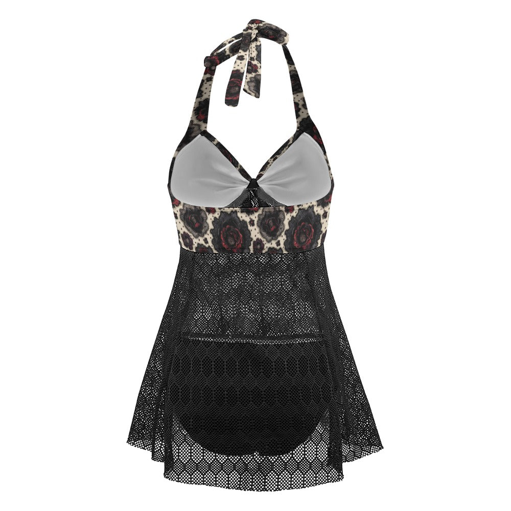 Vampire Art Goth Halter Two Piece Mesh Tankini Swimsuit - Black Roses