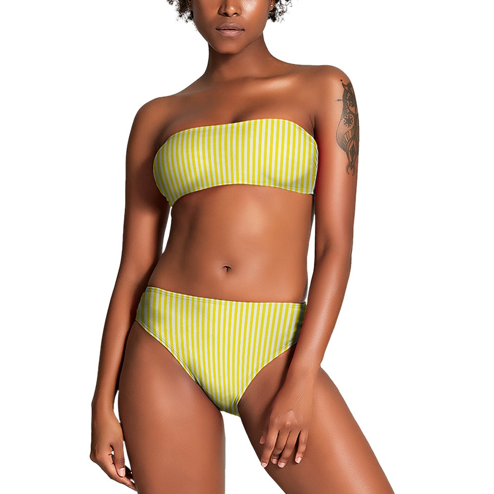 Vampire Art Two Piece Bandeau Strapless Retro Bikinis Swimsuit - Yellow Stripes