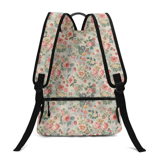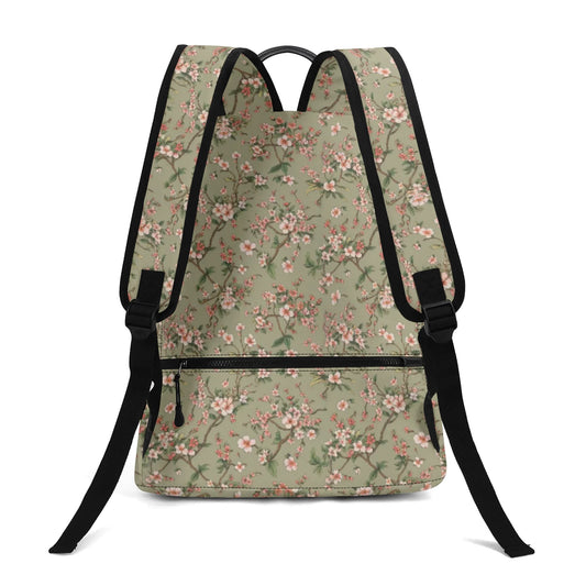 Vampire Art Retro Chic Vegan Leather 17 inch Back to School Twill Backpack - Khaki Retro Delicate Florals