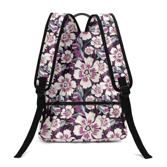 Vampire Art Retro Chic Vegan Leather 17 inch Back to School Twill Backpack - 1970s Surf Florals with White