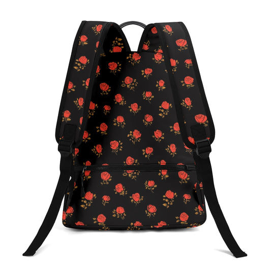 Vampire Art Retro Chic Vegan Leather 17 inch Back to School Twill Backpack - Black with Red Vintage Roses