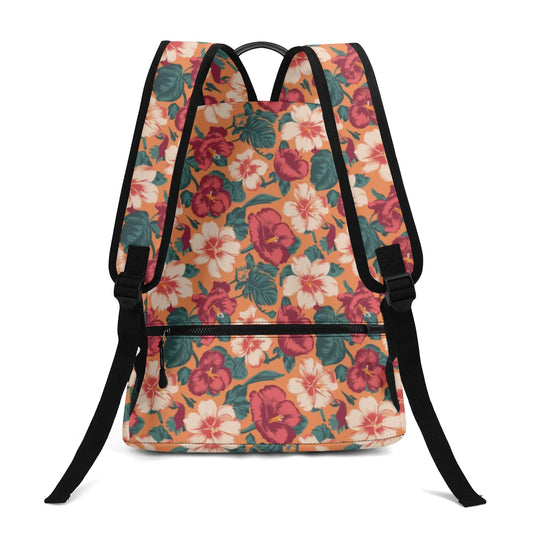 Vampire Art Retro Chic Vegan Leather 17 inch Back to School Twill Backpack - Retro Surfy Florals in Peach
