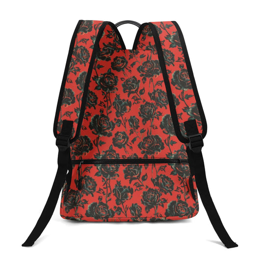 Vampire Art Retro Chic Vegan Leather 17 inch Back to School Twill Backpack - Red with Black Goth Roses