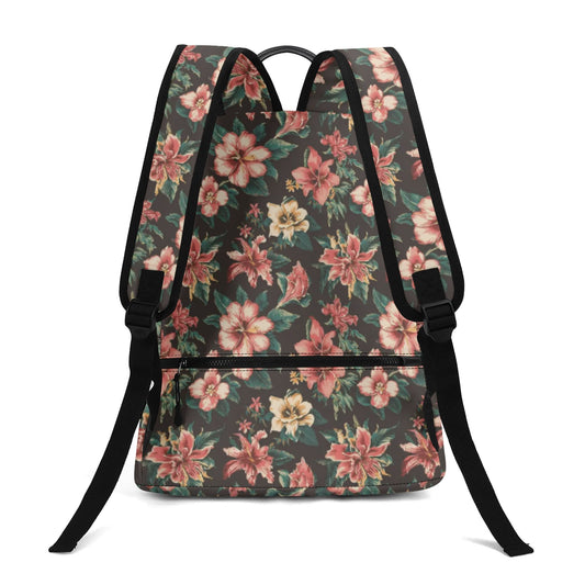 Vampire Art Retro Chic Vegan Leather 17 inch Back to School Twill Backpack - Dark 1970s Surf Florals