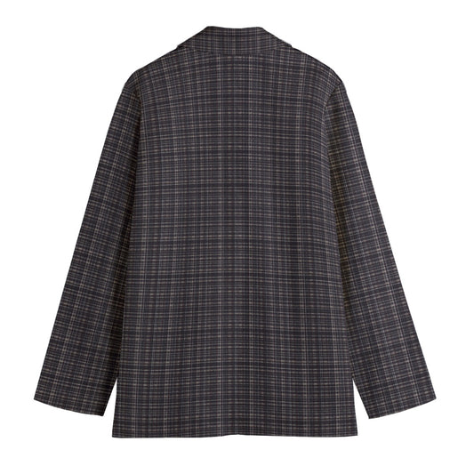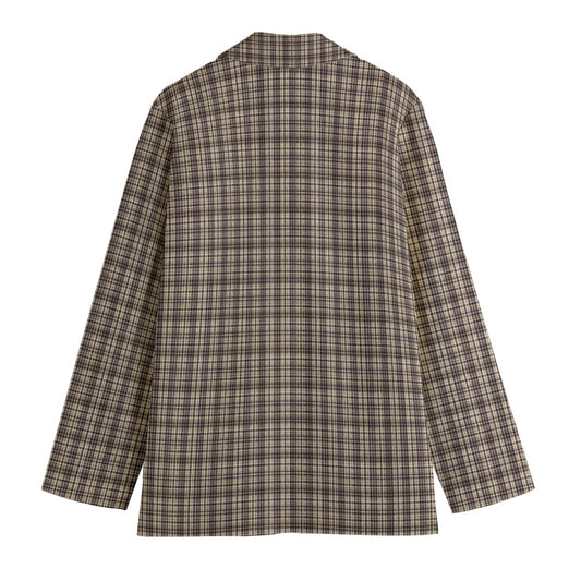Vampire Art 100% Cotton Dark Academia Brown Tartan Women's Leisure Blazer | 245GSM Cotton