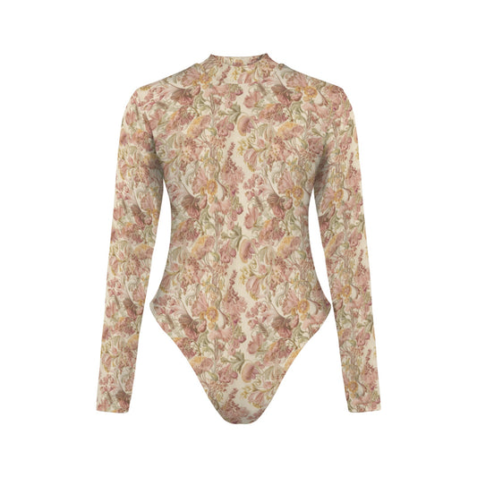 Vampire Art Retro Elegance Backless Long Sleeve Thumbhole Swimsuit - Chic Art Nouveau Florals in Cream