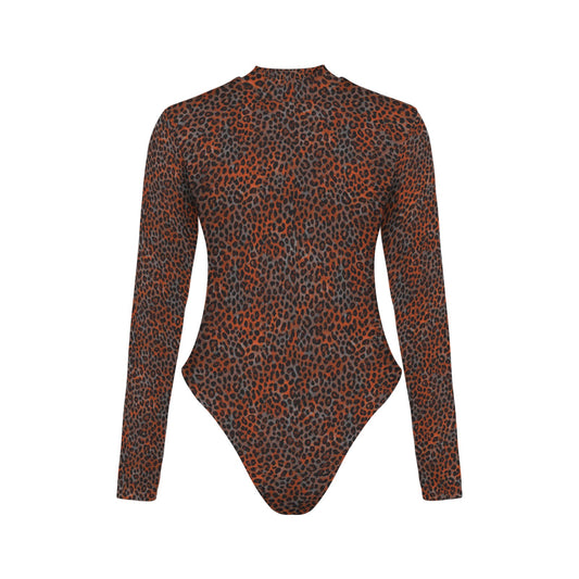Vampire Art Retro Elegance Backless Long Sleeve Thumbhole Swimsuit - Grunge Leopard