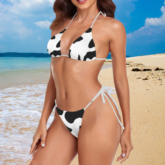 Vampire Art Glam Halter String Bikini Swimsuit Set - Cowgirl Cowhide Pattern