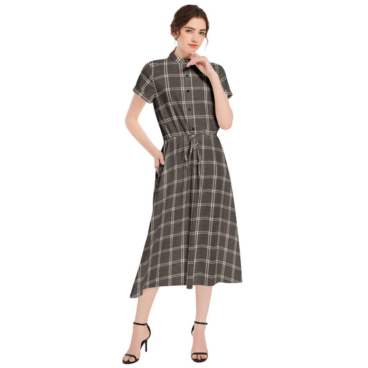 Vampire Art Dark Academia Victorian Vintage Brown Windowpane A-line Flared Midi Dress