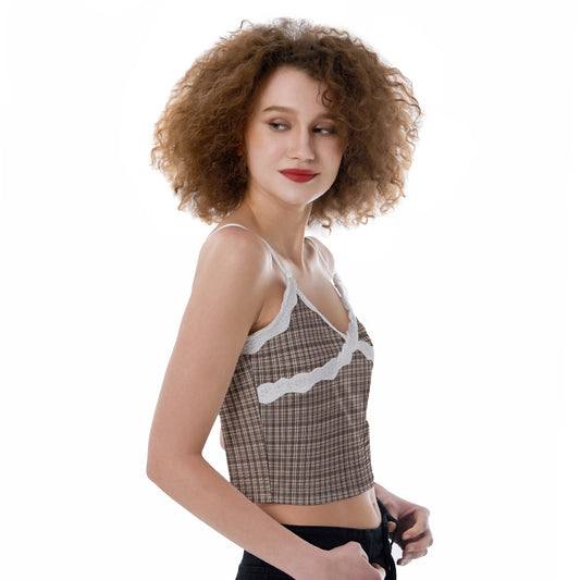 Vampire Art Dark Academia Cream & White Tartan Women's Lace Camisole
