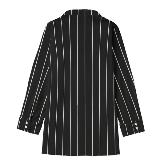 Vampire Art Victorian Vintage Black Striped Women's Long Blouse |115GSM Cotton poplin