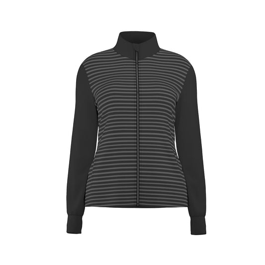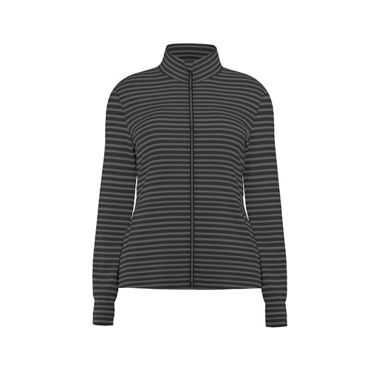 Vampire Art Women's Long Sleeve Thumbhole Jacket - Black and Charcoal Fully Striped