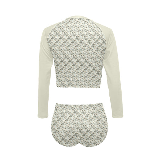 Vampire Art Women's Long Sleeve Bikini Set - Retro Victorian Flowers in Beige