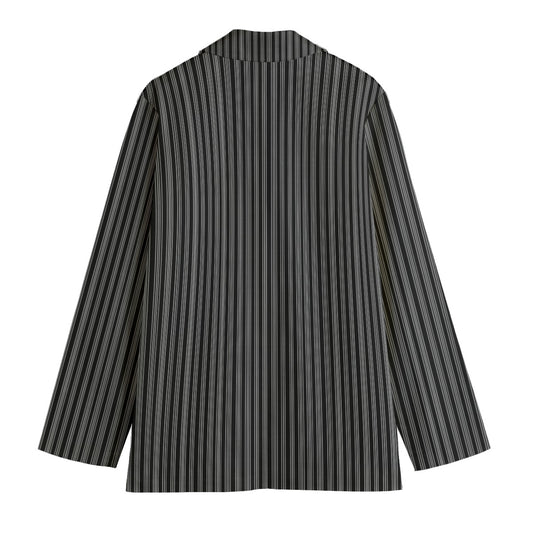 Vampire Art 100% Cotton Vintage Grandad Stripes in Black Women's Leisure Blazer | 245GSM Cotton