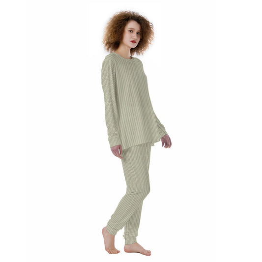 Vampire Art 100% Vintage Grandad Stripes in Khaki Women's Pyjama | 190GSM Cotton