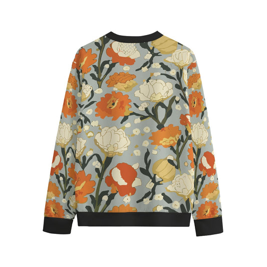 Vampire Art Art Nouveau Vintage Floral Unisex O-neck Sweatshirt | 100% 310GSM Cotton - Art Nouveau Orange and White Flowers