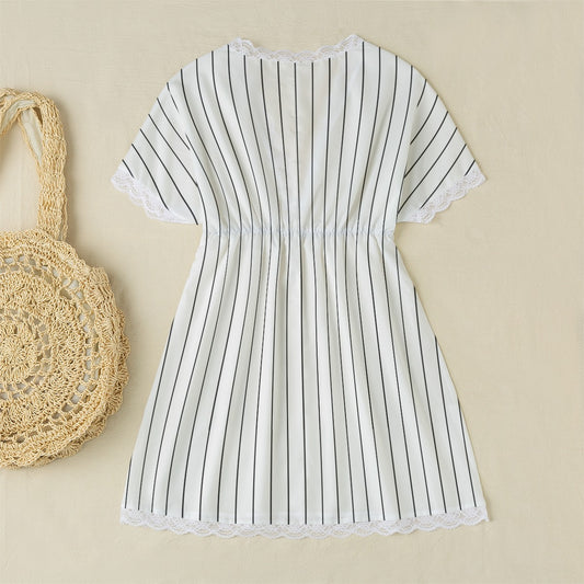 Vampire Art Victorian White Vintage Stripes Women's Lace Edge Sleepwear With Bat Sleeve
