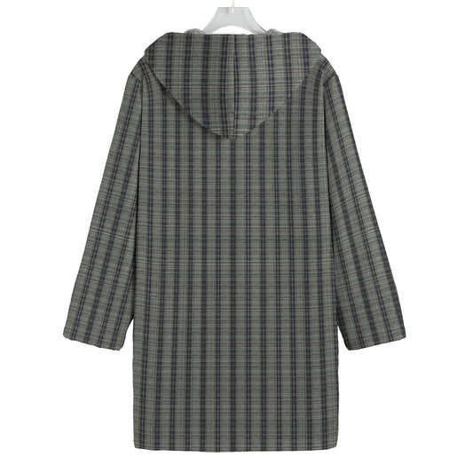 Vampire Art Vintage Charcoal Blue and Green Tartan Dark Academy Men's Canvas Button Fleece Jacket