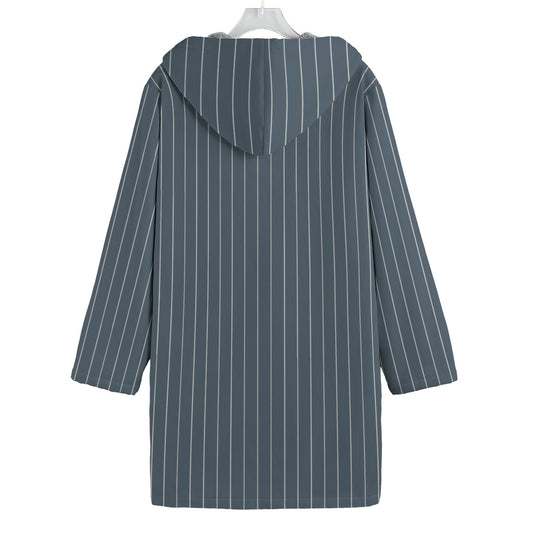 Vampire Art Victorian Vintage Stripes in Charcoal Blue Men's Canvas Button Fleece Jacket