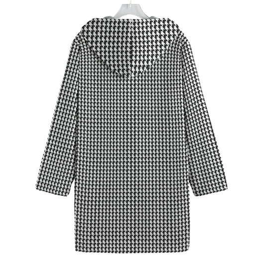 Vampire Art Retro Houndstooth in Black & White Men's Canvas Button Fleece Jacket