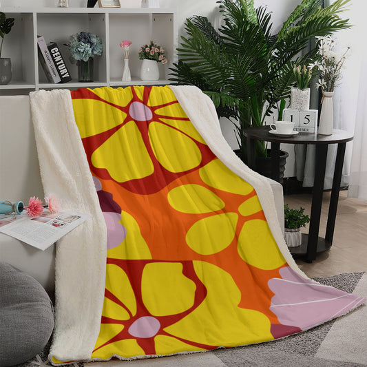 Vampire Art Retro Bold Chic Florals Sherpa Thick Blanket - Retro Surfy Yellow and Orange Flowers
