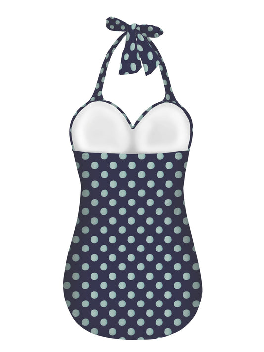 Vampire Art Vintage Chic Halter Neck One-Piece - Blue Polka Dot