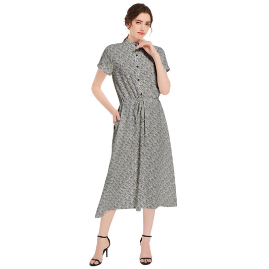 Vampire Art Retro French-style A-line Drawstring Flared Casual Midi Dress - Grey Victorian Little Flowers