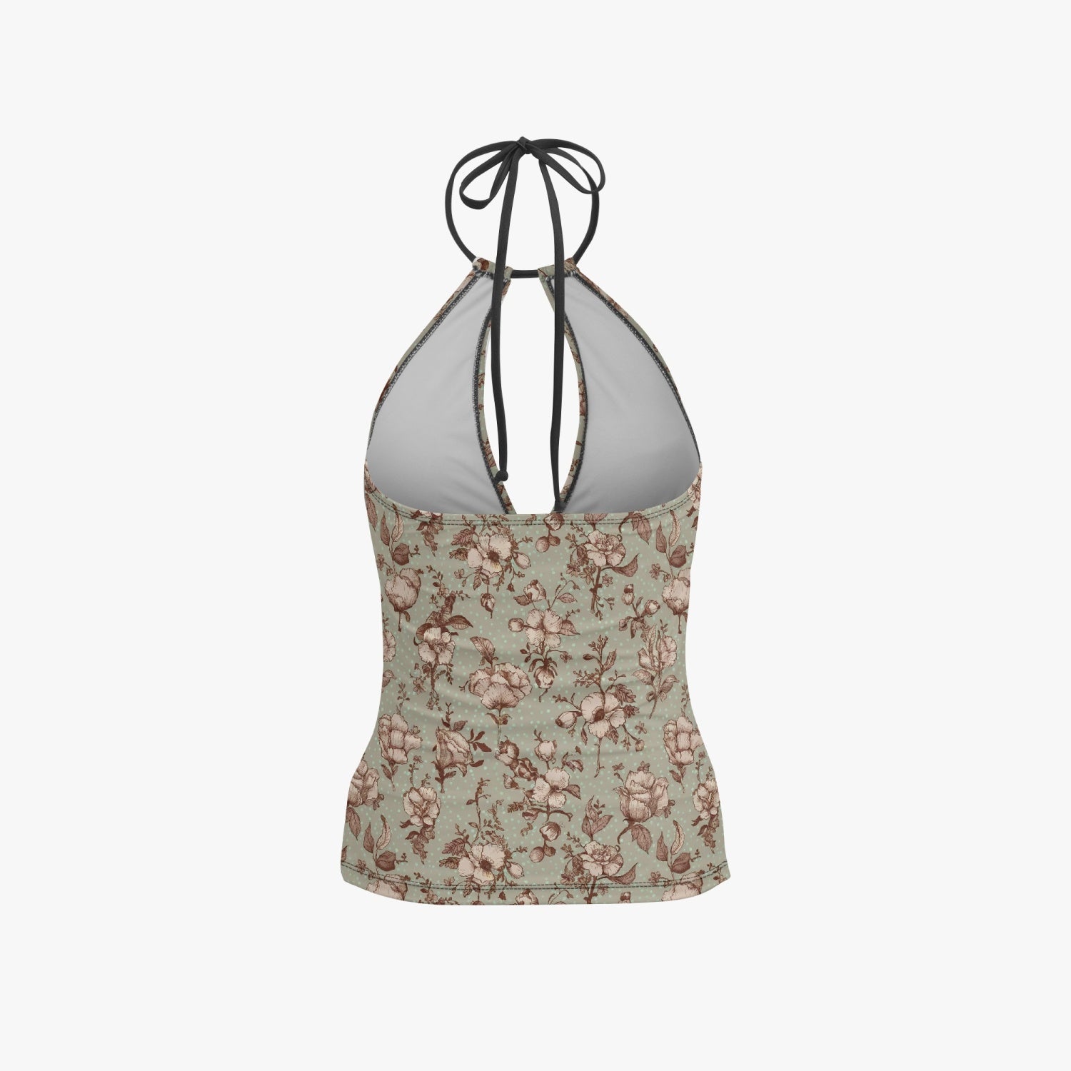 Vampire Art Retro Halter Two-Piece Tankini Swimsuit - Mint Green Vintage Florals