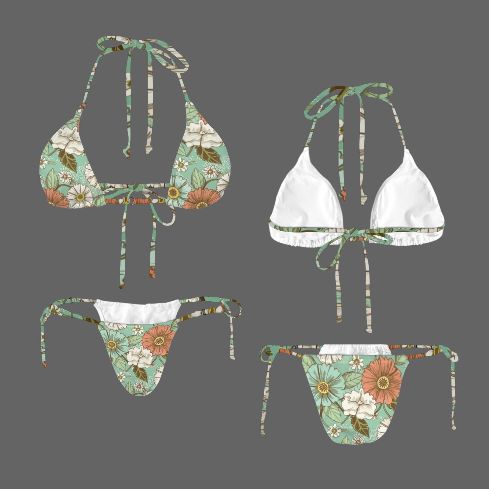 Vampire Art Glam Halter String Bikini Swimsuit Set - Surfy Flowers in Mint