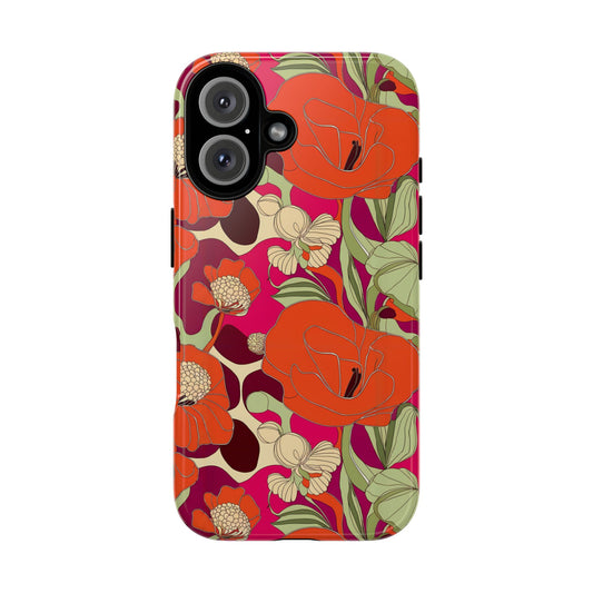 Vampire Art Vintage and Edgy iPhone 16 Tough Case - Retro Surf Exotic Flowers