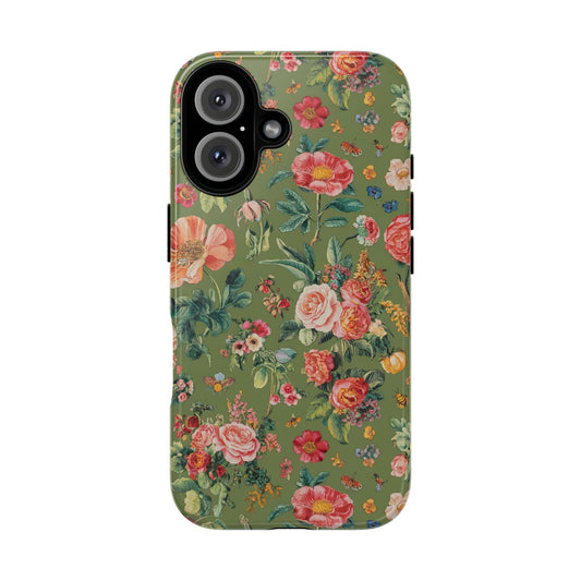 Vampire Art Vintage and Edgy iPhone 16 Tough Case - Khaki Florals