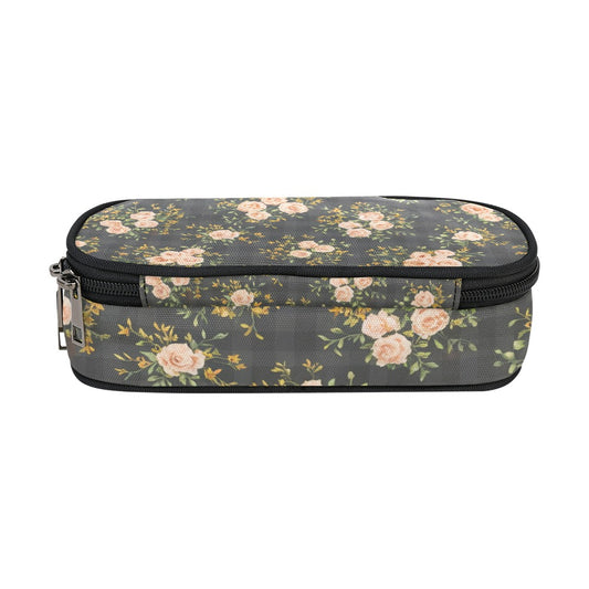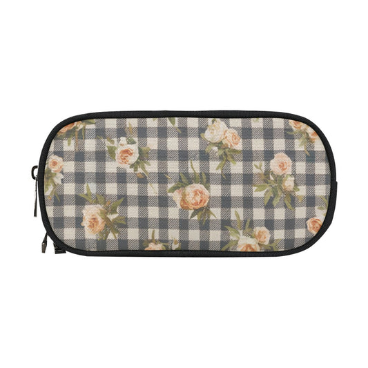 Vampire Art Studio Caddy: Deluxe Pencil Pouch - Black Gingham with Roses