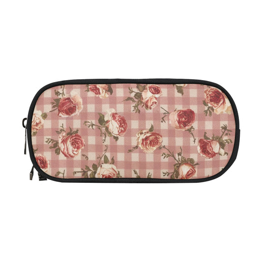 Vampire Art Studio Caddy: Deluxe Pencil Pouch- Cottagecore Red Gingham with Roses