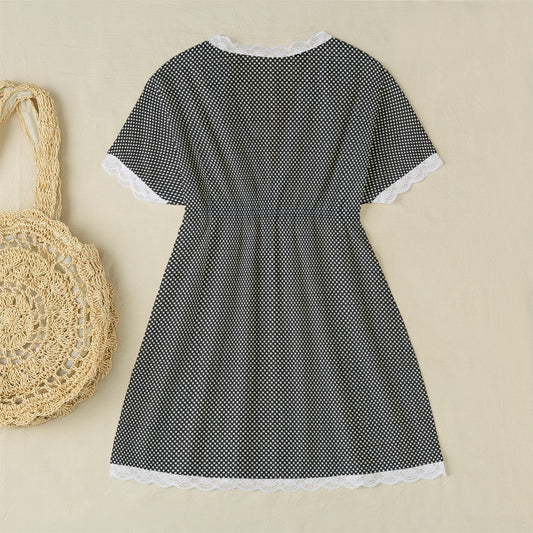 Vampire Art Vintage Victorian Black Polka Dot Women's Lace Edge Sleepwear With Bat Sleeve