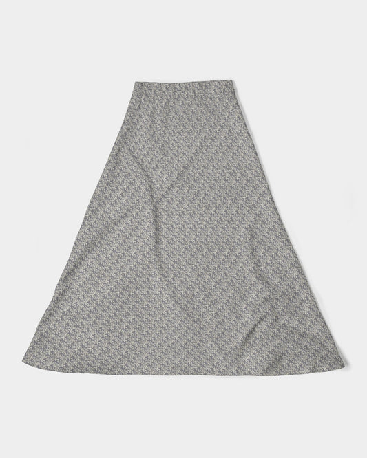 Vampire Art Women's French Style A-Line Midi Skirt - Retro Blue / Grey Floral Pattern