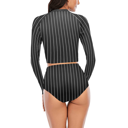 Vampire Art Women's Long Sleeve Bikini Set - Black Pinstripe